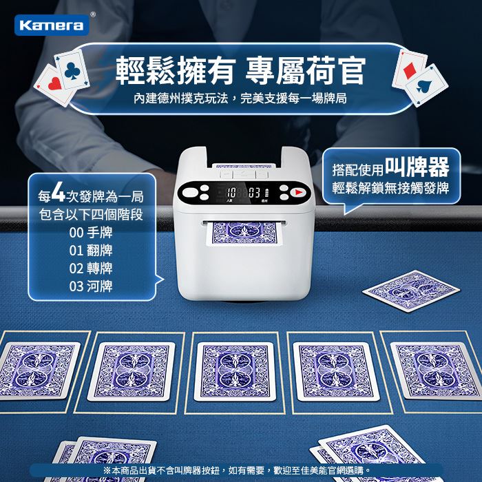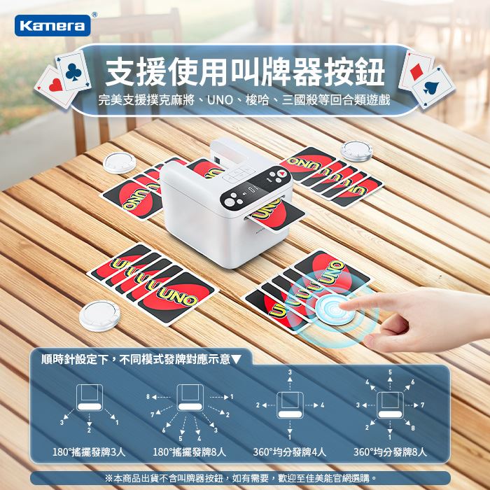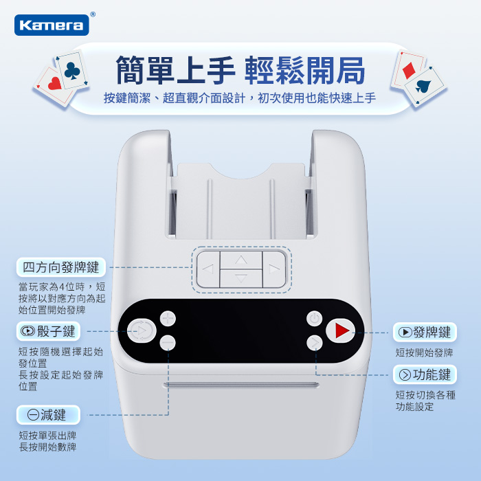 - 發牌不再手抽筋,簡化遊戲準備時間,闔家歡樂新選擇