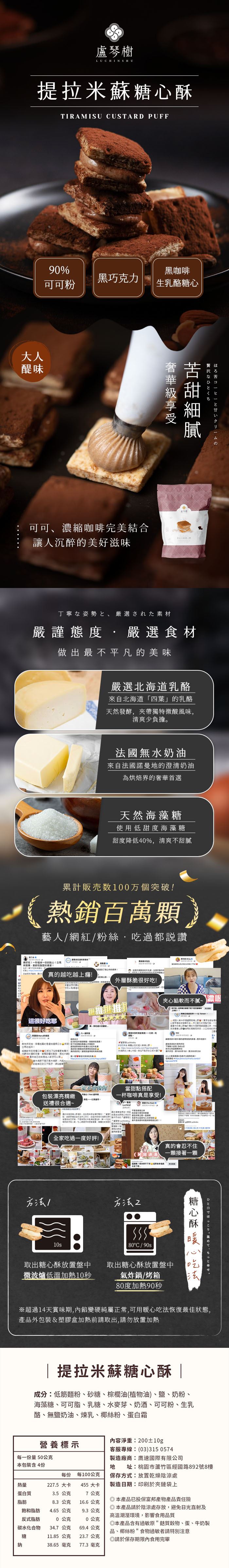 | 商品名稱 | 盧琴樹 提拉米蘇糖心酥 |