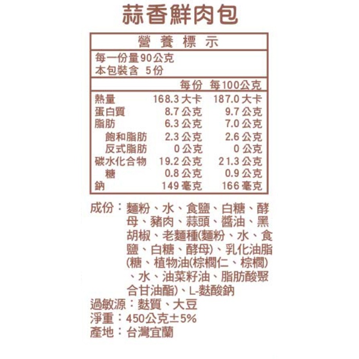 | 商品名稱 | 【神農包子】蒜香鮮肉包(五顆/包) |
