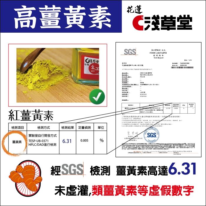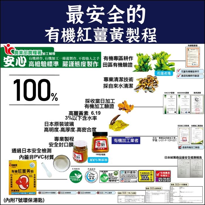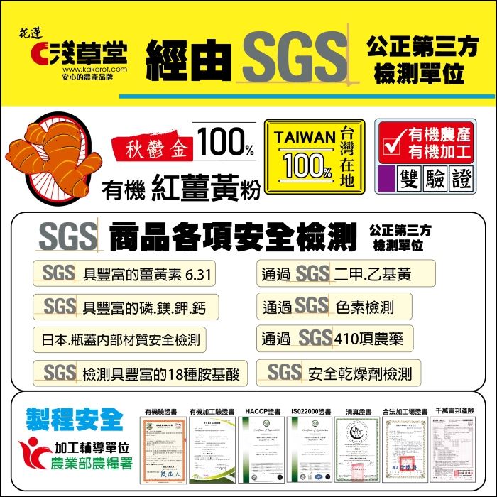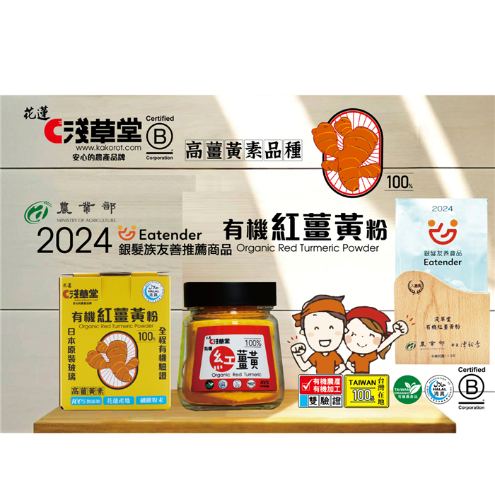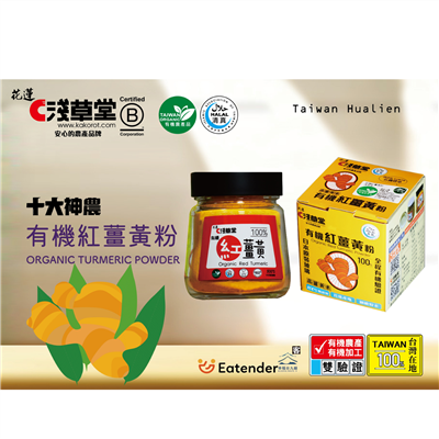 淺草堂有機紅薑黃. 原料安全:花蓮有機專區耕作.