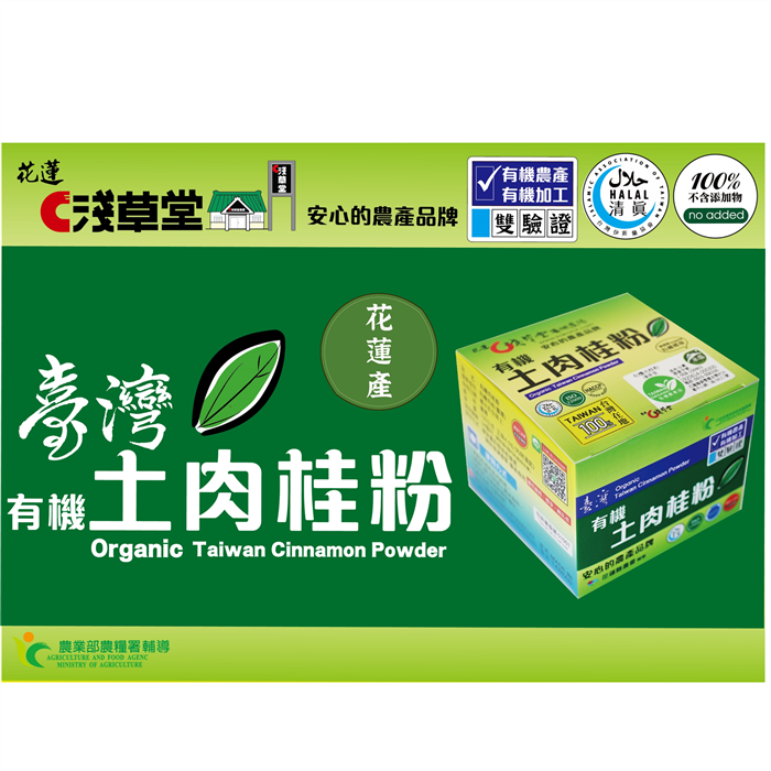 淺草堂有機土肉桂. 原料安全:花蓮有機專區耕作.