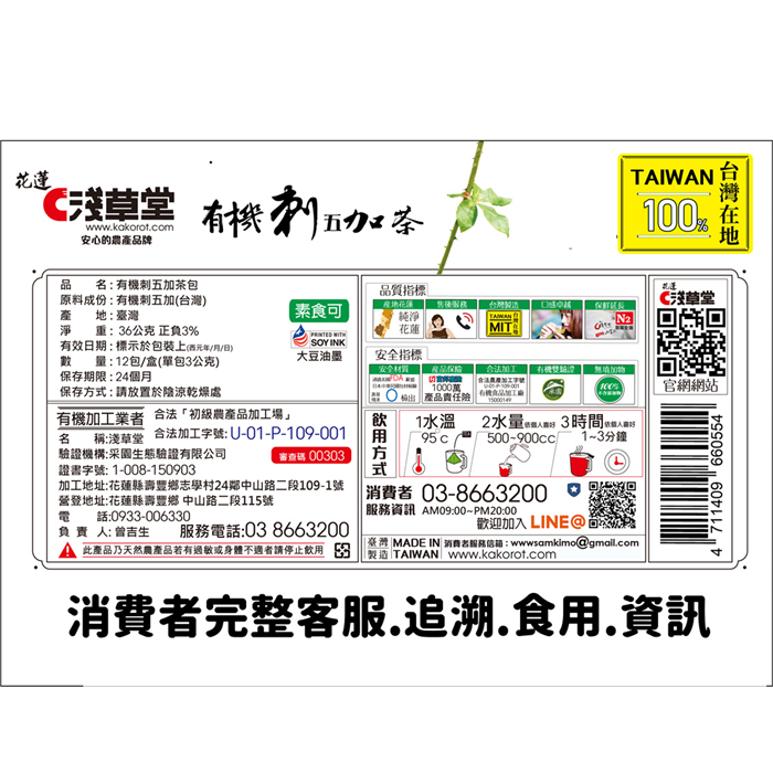 | 內容物(完整成份/食品添加物) | 有機刺五加 |