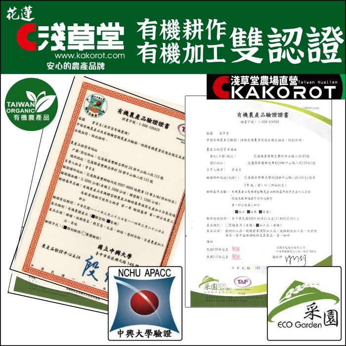 農產初級加工場 字號U-01-P-109-001 (有機認證)