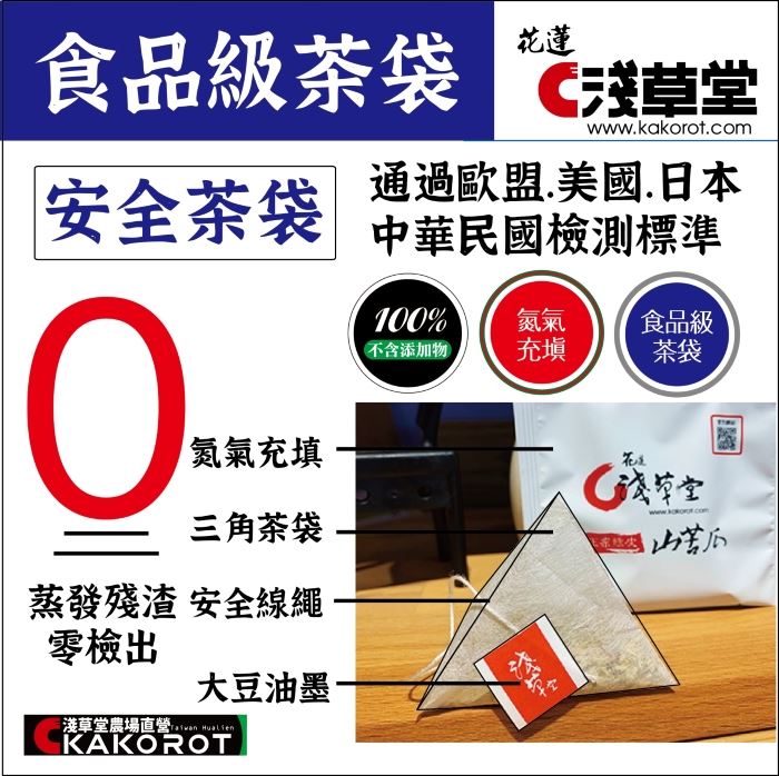 每包茶包均氮氣充填.包材及棉繩均為食品級材質.
