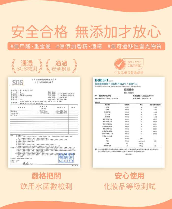 •無添加甲醛、酒精、重金屬、可遷移性螢光物質