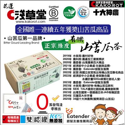 花蓮推動有機農業多年來,【第一個在地花蓮生產完成的有機山苦瓜茶包】。