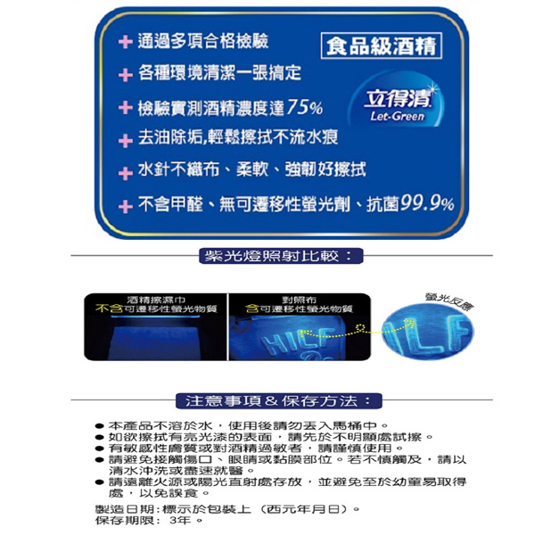 | 內容物 | 立得清 75%酒精擦濕紙巾(單片包30片-輕巧包)X24入 | |