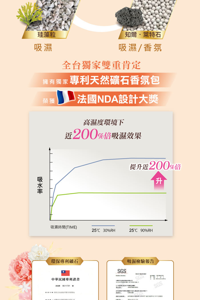| 成分 | 天然礦石、天然珪藻粒、椰殼活性炭、植物香精油、環保再生袋、不織布袋、麻繩 |