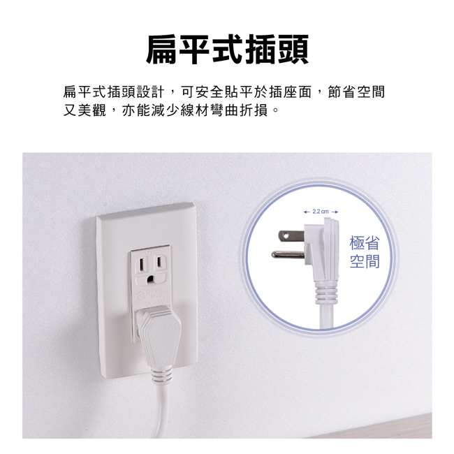 *雙重絕緣電線,預防漏電,可耐15A電流1,650W,安全穩固