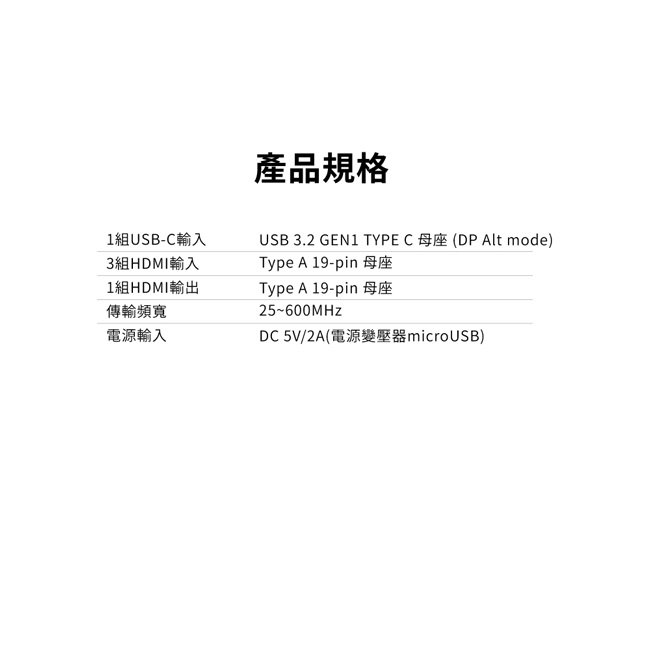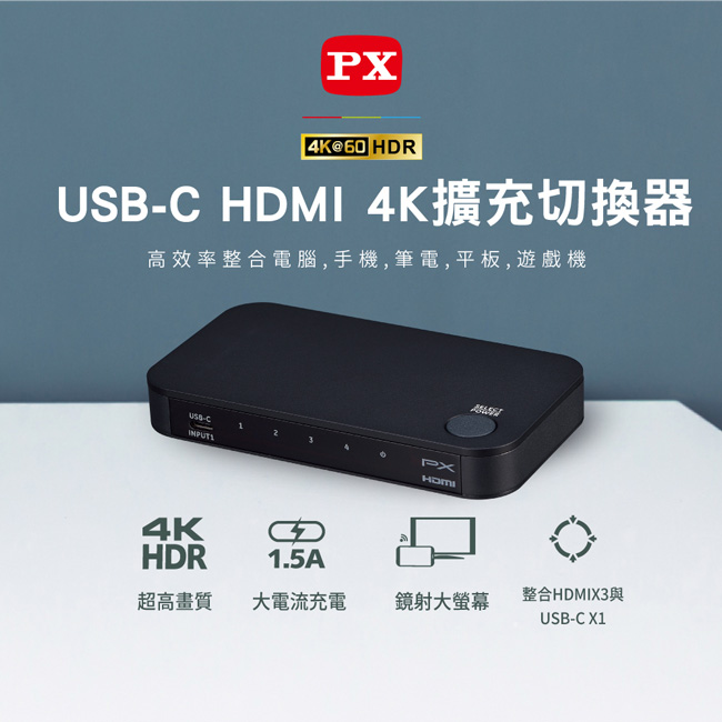 | 商品名稱 | 【PX大通】USB-C HDMI 4K擴充切換器 HC2-410 |