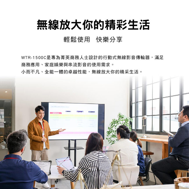 包裝內容物:WTR-1500C 無線發射器 x1,WTR-1500C無線接收器 x1,Type C - USB A電源線 x1 (接收器使用),HDMI A-A影音線 x1 (接收器使用),使用者操作手冊 x1