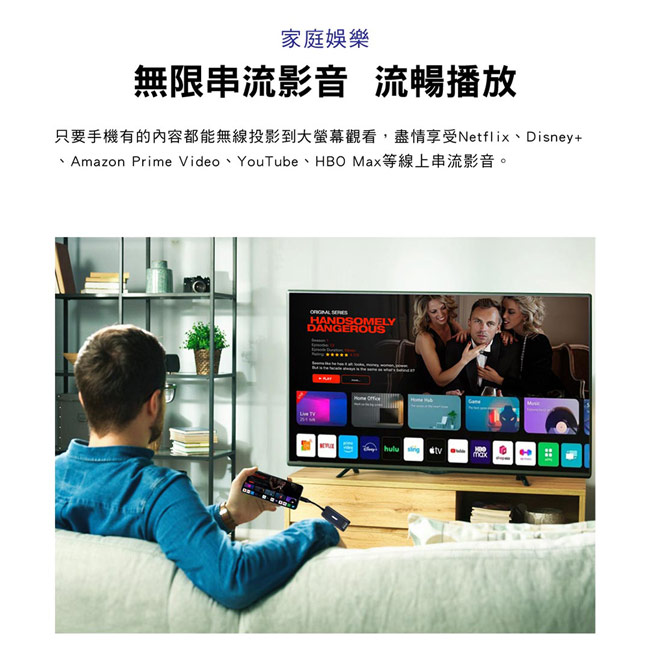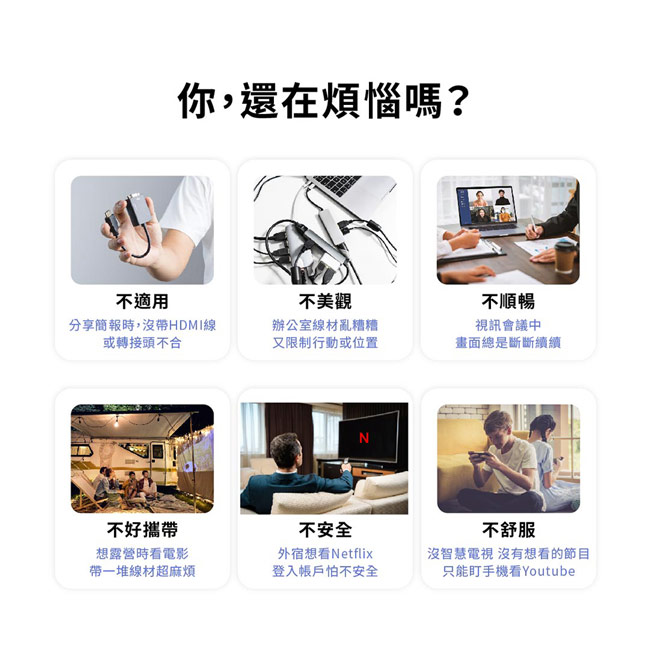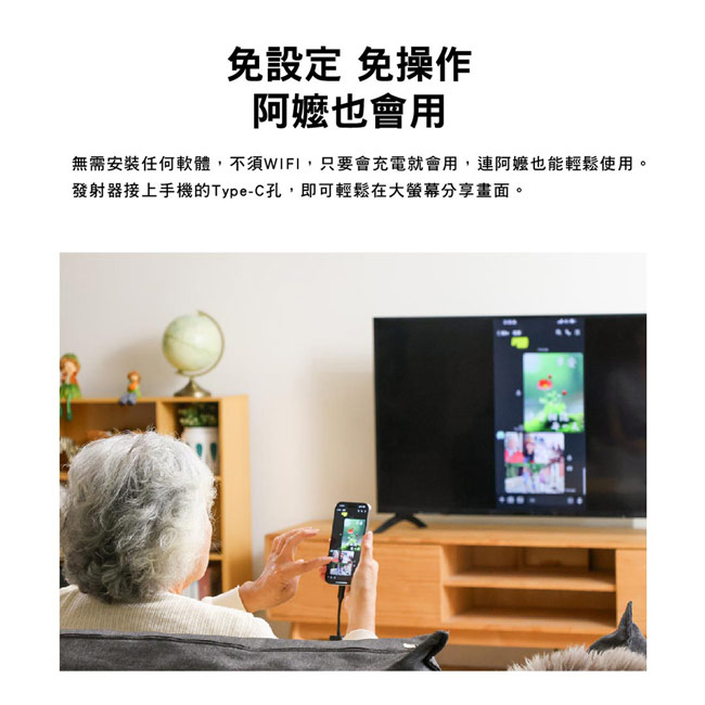*好用的創新設計,一鍵暫停/投影畫面、免軟體免設定、無限線上影音、USB-C影音+供電