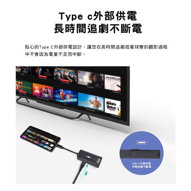 接收器(輸出):HDMI x1 / USB-C x1(供電)