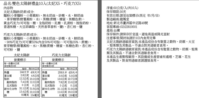 | 營養標示 | 如內文標示 |