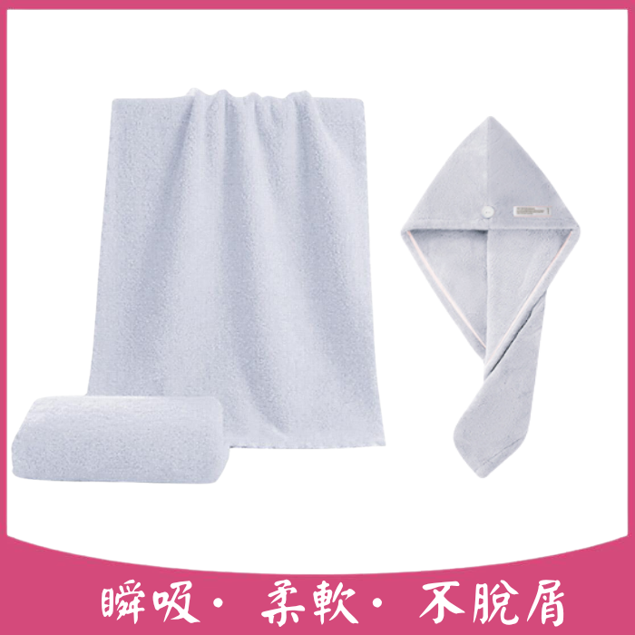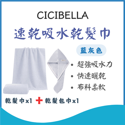 【CICIBELLA】乾髮巾藍灰色2件組 (乾髮巾*1+乾髮包巾*1) |