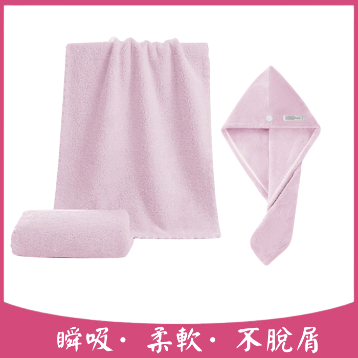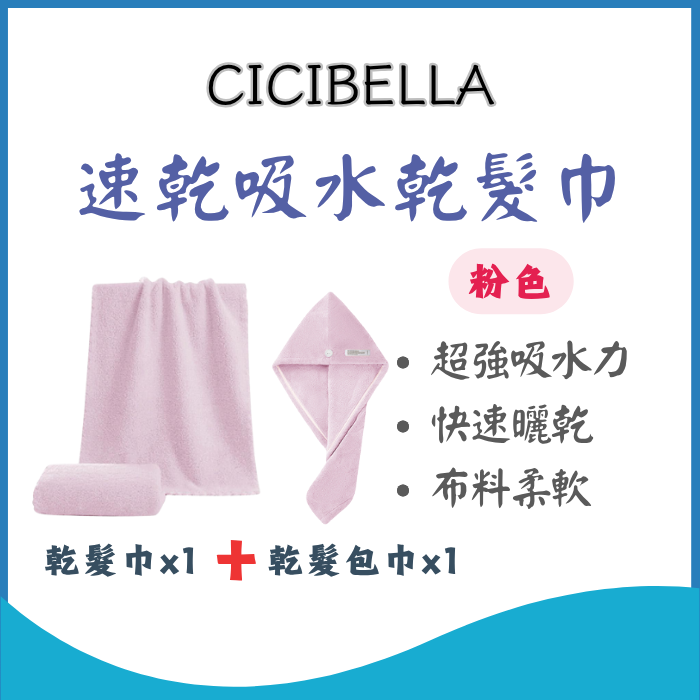 【CICIBELLA】乾髮巾粉色2件組 (乾髮巾*1+乾髮包巾*1)