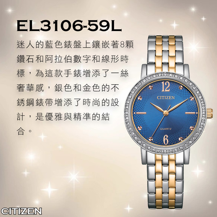 CITIZEN 星辰 時尚淑女鋼帶女錶 EL3106-59L