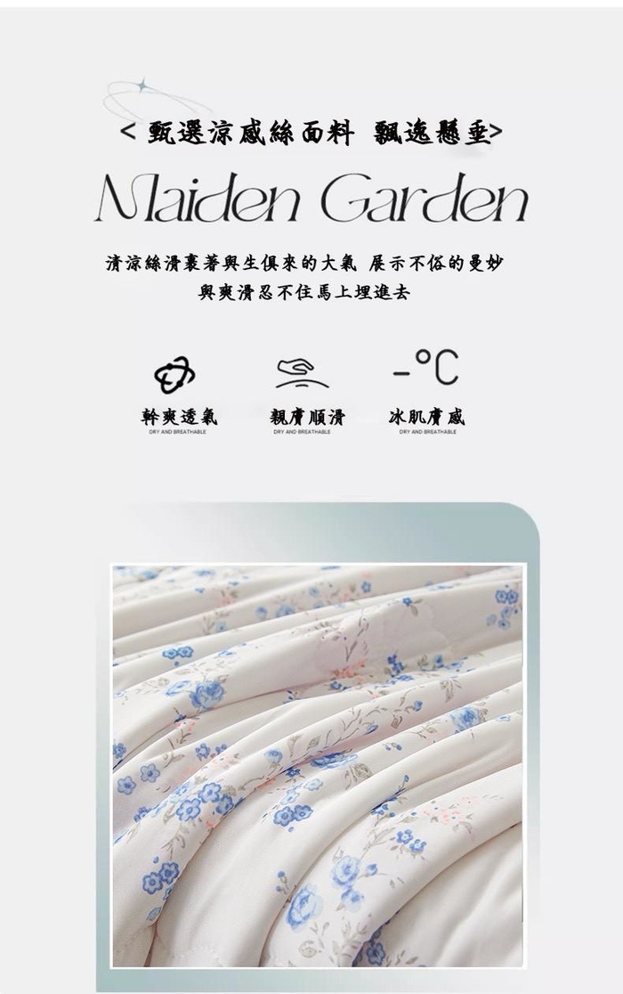 全方位透氣設計,整夜清爽不悶熱:表層搭配高透氣冰絲面料,2000 + 微透氣孔快速排散體熱與濕氣,即使長時間睡眠也能保持被窩內空氣流通。涼感不打折扣的同時,杜絕黏膩感,猶如睡在流動的涼風中,安穩入眠到天亮。