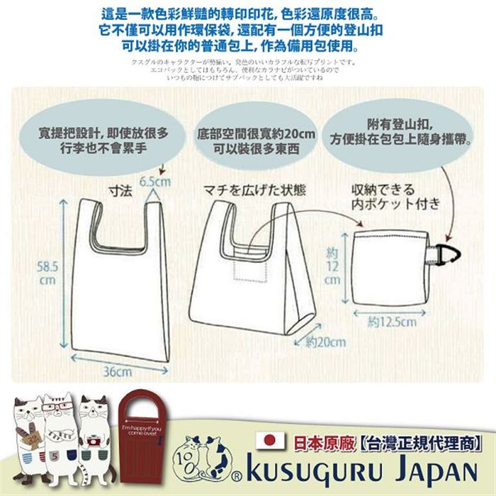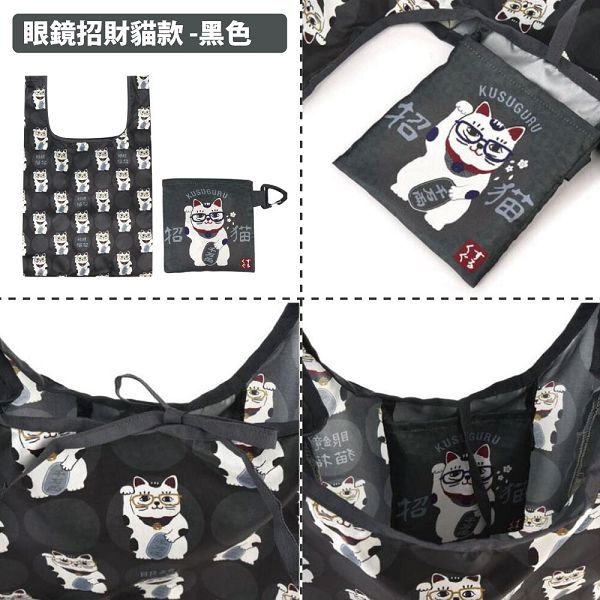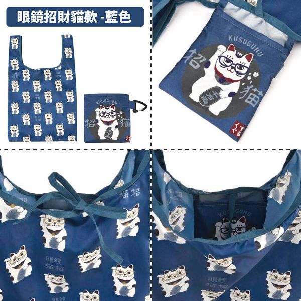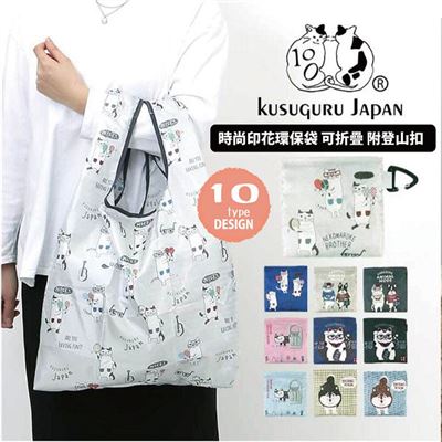 | 【商品名稱】 | 【Kusuguru Japan】日本眼鏡貓可折疊收納購物袋(附登山扣)-多款選 |