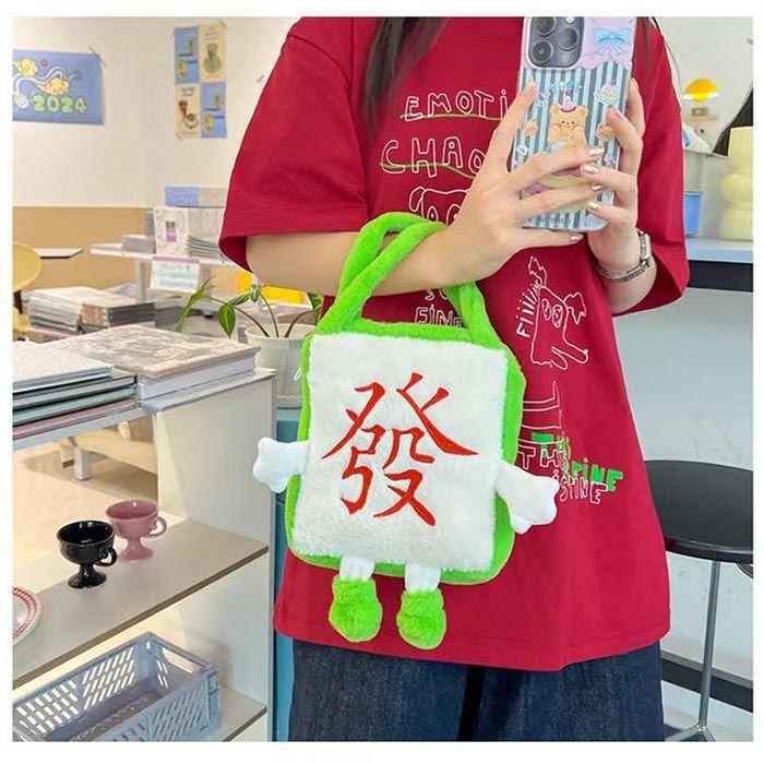 | 【商品名稱】 | 創意毛絨手提袋-麻將綠款 |