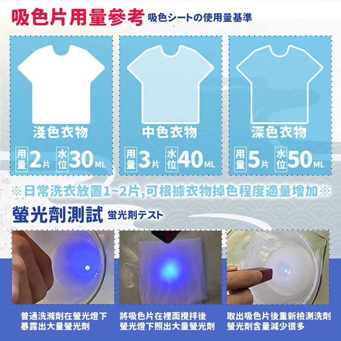 -水位50ml,嚴重掉色的程度,建議使用5-6片起