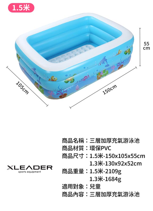 | 【商品名稱或型號】 | 【LeaderX】三層加厚充氣游泳池1.3米(加大加厚)-海洋動物限定款 |