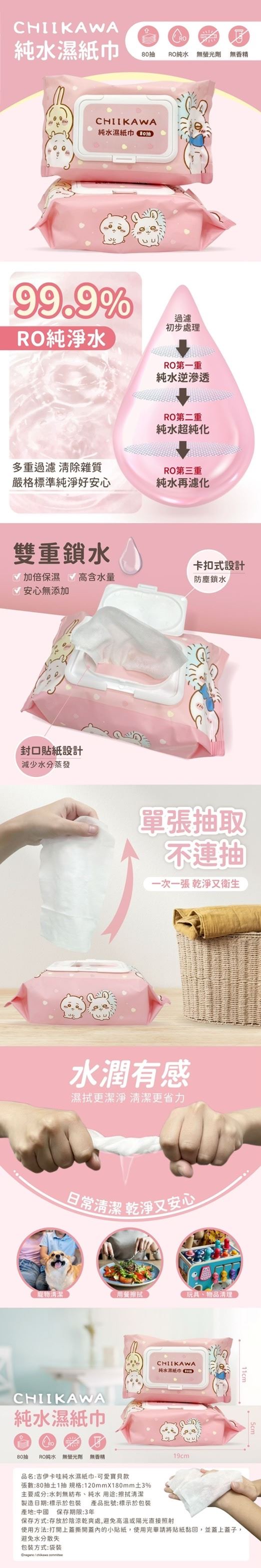 | 商品名稱 | 吉伊卡哇純水濕紙巾 (可愛寶貝款)-80抽*36包 |