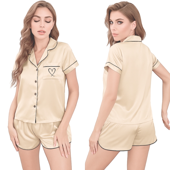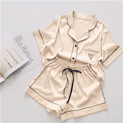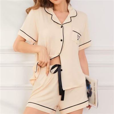 | 【商品名稱】 | 【RAY FAIR 美好生活】冰絲居家睡衣套裝(上衣+短褲) - 香檳色 |