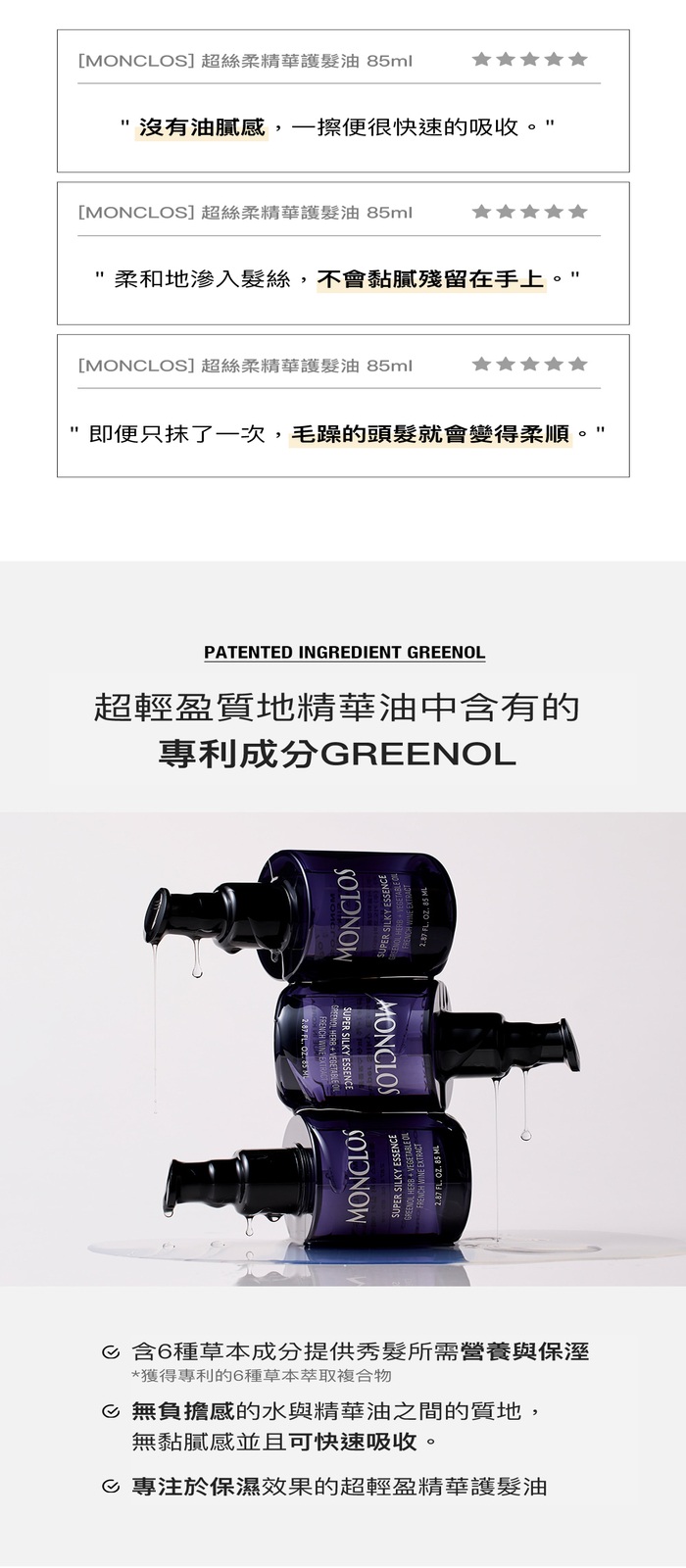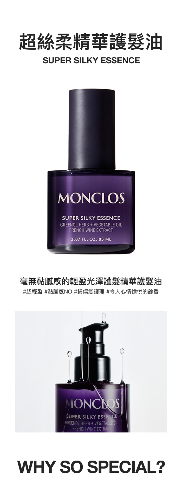 | 商品名稱/包裝內容規格 | 【MONCLOS】髮根蓬鬆控油(護髮膜+洗髮露+護髮油)[3件組] |