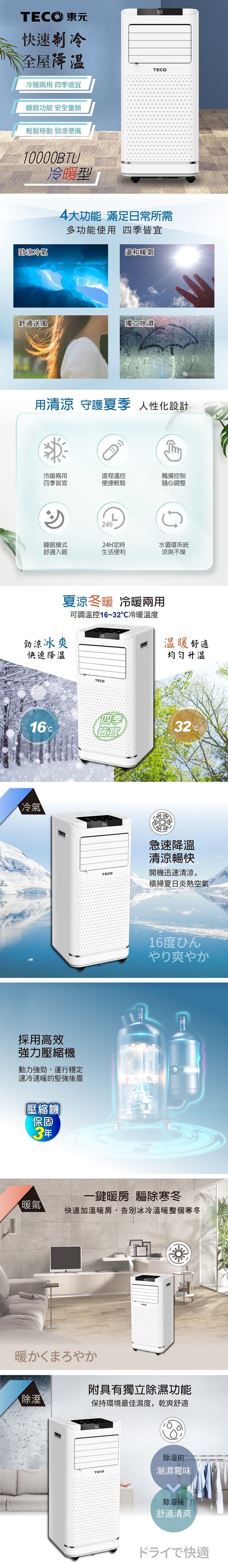 | 商品名稱 | 【TECO東元】10000BTU多功能冷暖型移動式冷氣機/空調(XYFMP-2809FH) |