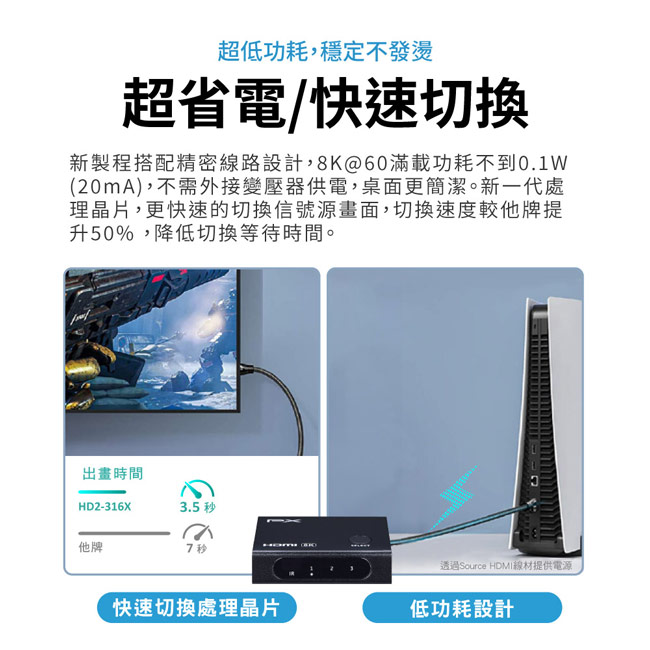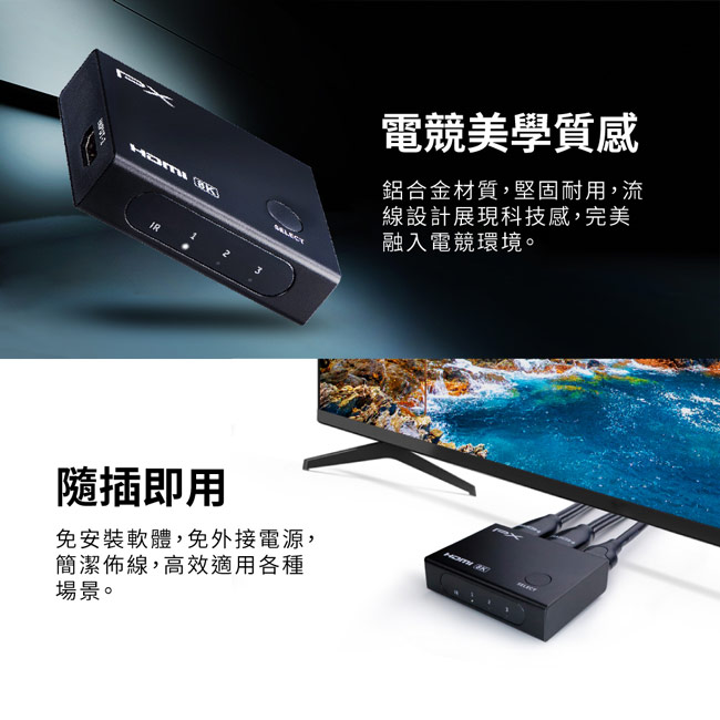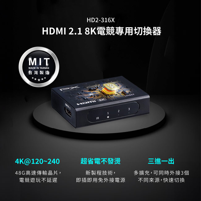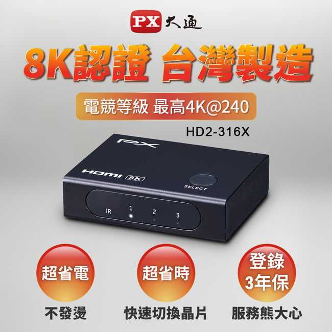 | 商品名稱 | 【PX大通】HDMI 2.1(8K)三進一出電競專用切換器 HD2-316X |