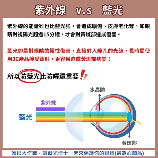 適當阻隔藍光(有效阻止藍光進入眼睛)