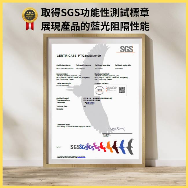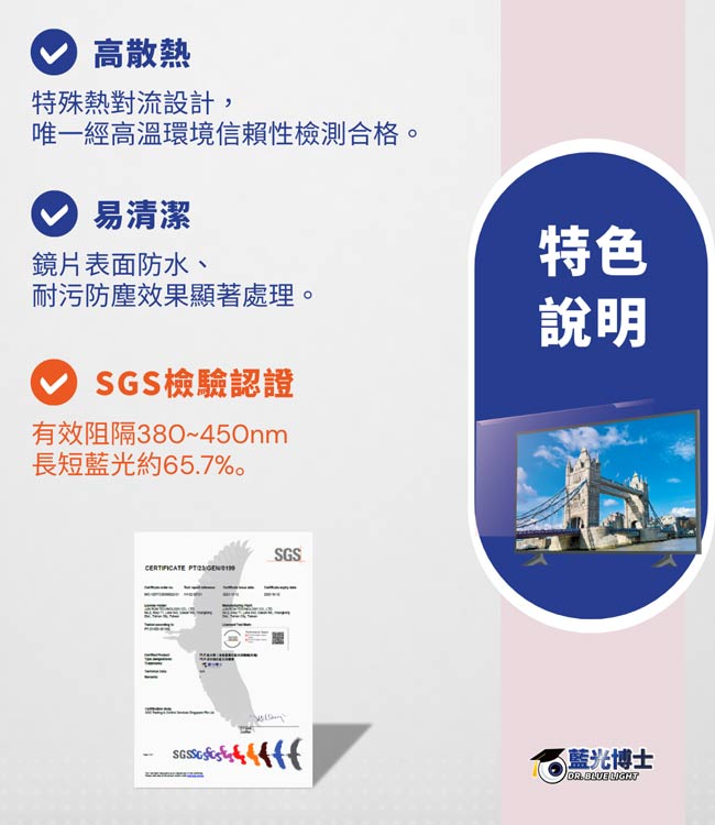 *經SGS檢驗:可有效阻隔380~450nm長短藍光. 約65.7%
