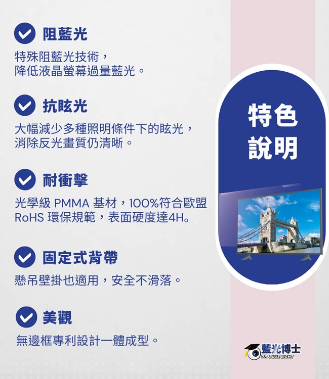 | 【商品名稱或型號】 | 【藍光博士】55吋抗眩抗藍光液晶電視護目鏡(淡玫瑰色) JN-55PLGR |