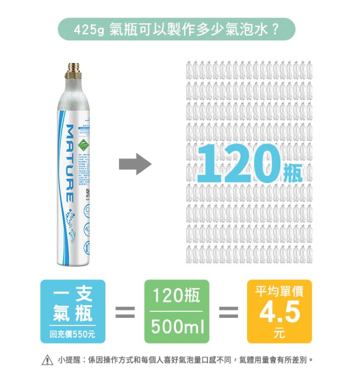 | 商品名稱 | MATURE美萃 食用級二氧化碳氣瓶425g |
