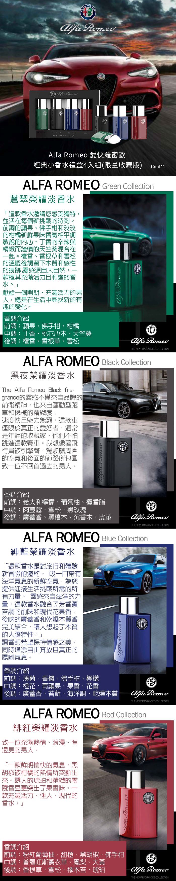 | 商品名稱/包裝內容規格 | ●緋紅榮耀淡香水 15ml ●紳藍榮耀淡香水 15ml ●黑夜榮耀淡香水 15ml ●蒼翠榮耀淡香水 15ml |