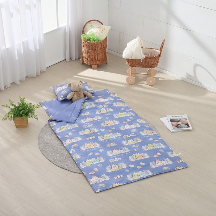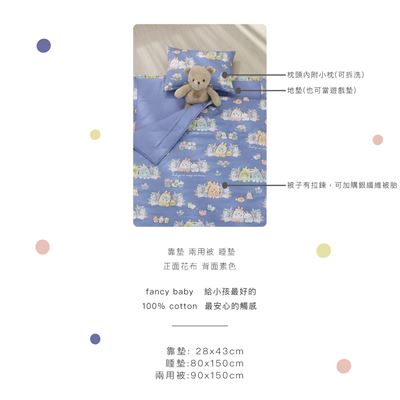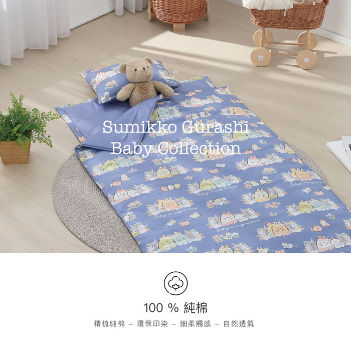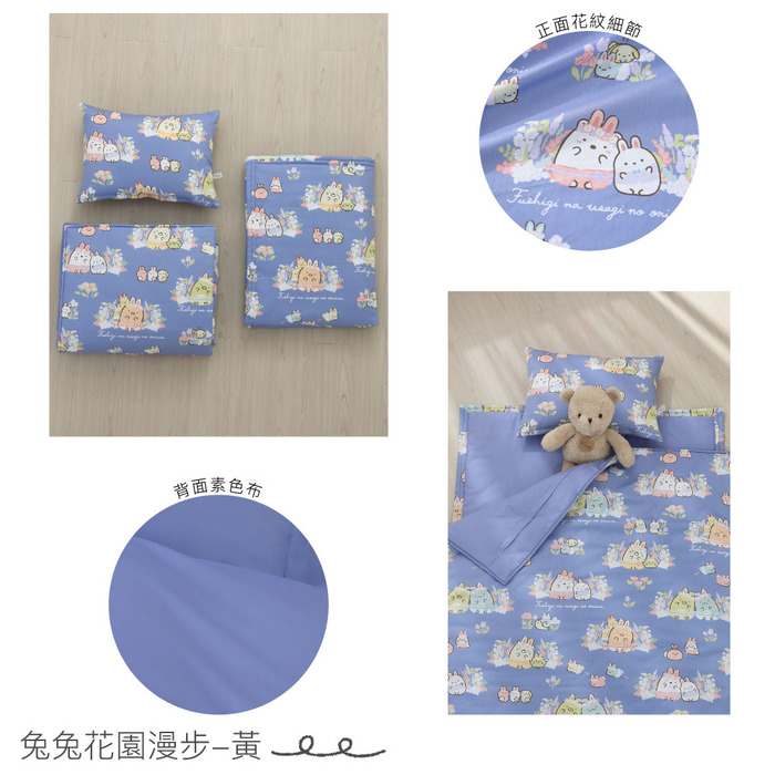 角落小夥伴-幼稚園兒童睡墊組-花園漫步 藍-台灣製造