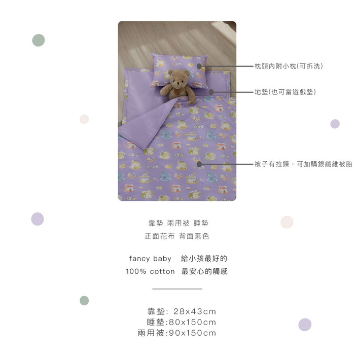 靠墊28x43cm 兩用被90x150cm 睡墊80x150cm