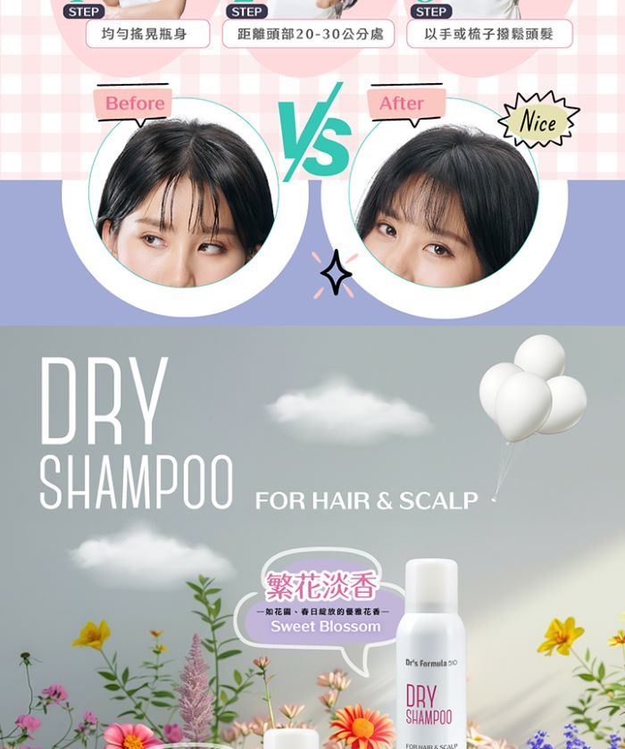 | 使用方法 | 使用前請均勻搖晃瓶身,距離頭部20-30公分處,噴在較油或有異味之髮根或髮絲處,靜置15-20秒後,再以手或梳子撥鬆頭髮即可。 |