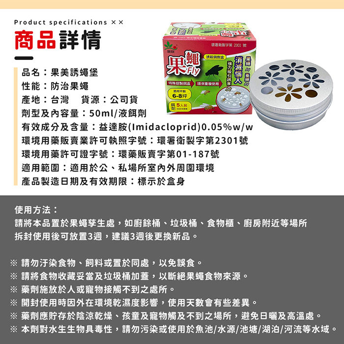 | 用途 | 防治果蠅 |