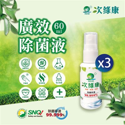 | 商品名稱 | 【次綠康】廣效隨身除菌液60mlx3 |