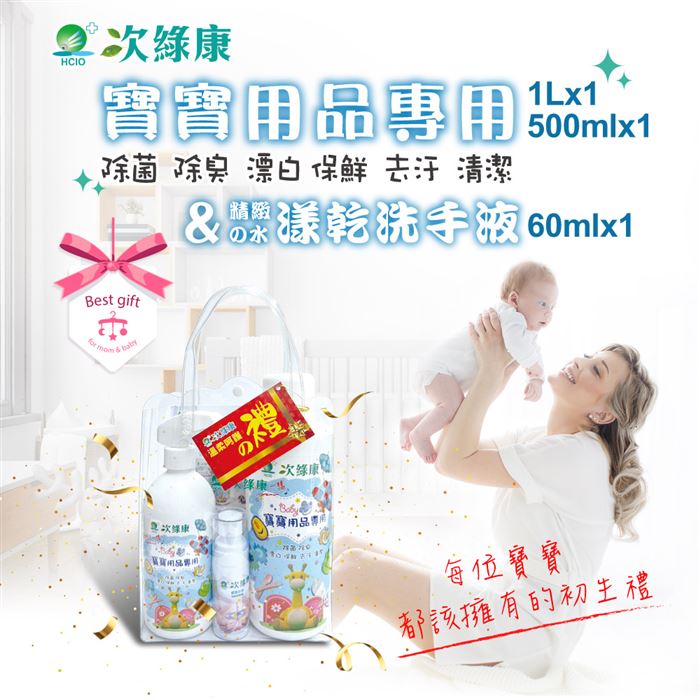 | 商品名稱 | 【次綠康】寶寶用品專用500mlx1+濃縮1000mlx1+水漾乾洗手60mlx1 |