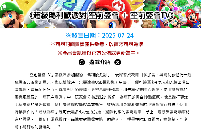 | 商品名稱 | NS2 超級瑪利歐派對 空前盛會 + 空前盛會TV 中文版 |