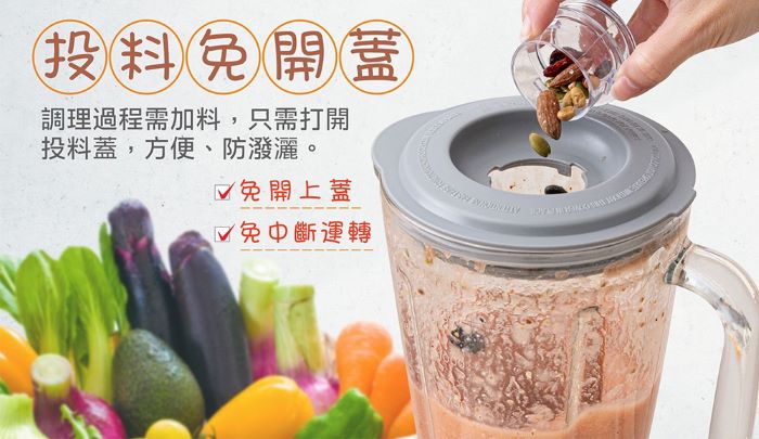 上蓋投料口 免開蓋不噴濺,刀座可拆好清洗。