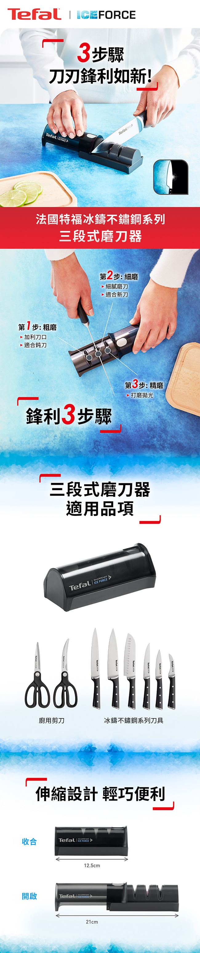 Tefal法國特福 冰鑄不鏽鋼系列三段式磨刀器(可伸縮設計)