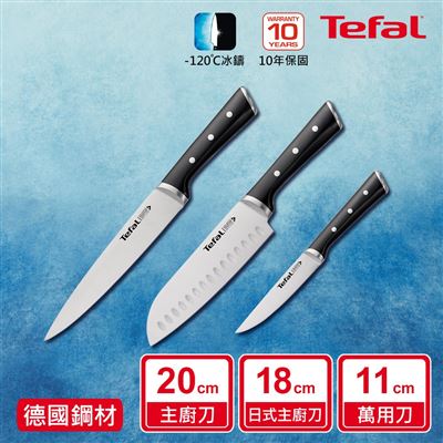 Tefal法國特福 冰鑄不鏽鋼系列刀具三件組(11CM萬用刀+18CM日式主廚刀+20CM主廚刀)