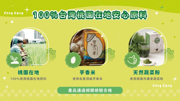 嚴選自產頂級芋香米,結合桃園市農會天然蔬菜粉