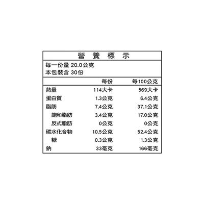 過敏原資訊 :本產品含有含麩質穀類製品。本產品與其他含有大豆的產品於同一產線生產,食物過敏者請留意。