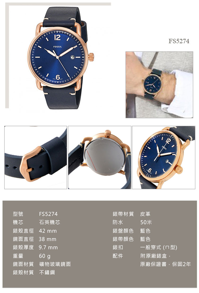 | 【商品名稱】 | 【FOSSIL】RUNWAY簡約時標時尚皮革腕錶(FS5274)-藍 [平輸] |
