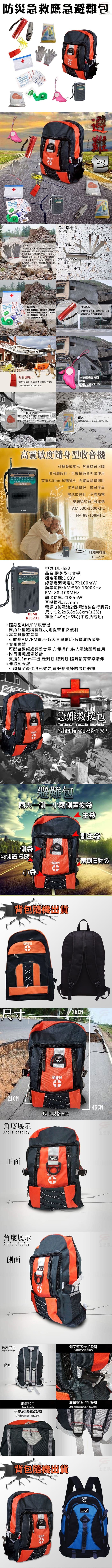 | 【原產地】 | 醫療包:台灣。 背包、警報器、哨子、棉質手套、保溫急救毯、萬用瑞士刀、收音機、手電筒:中國。 輕便雨衣:越南 |